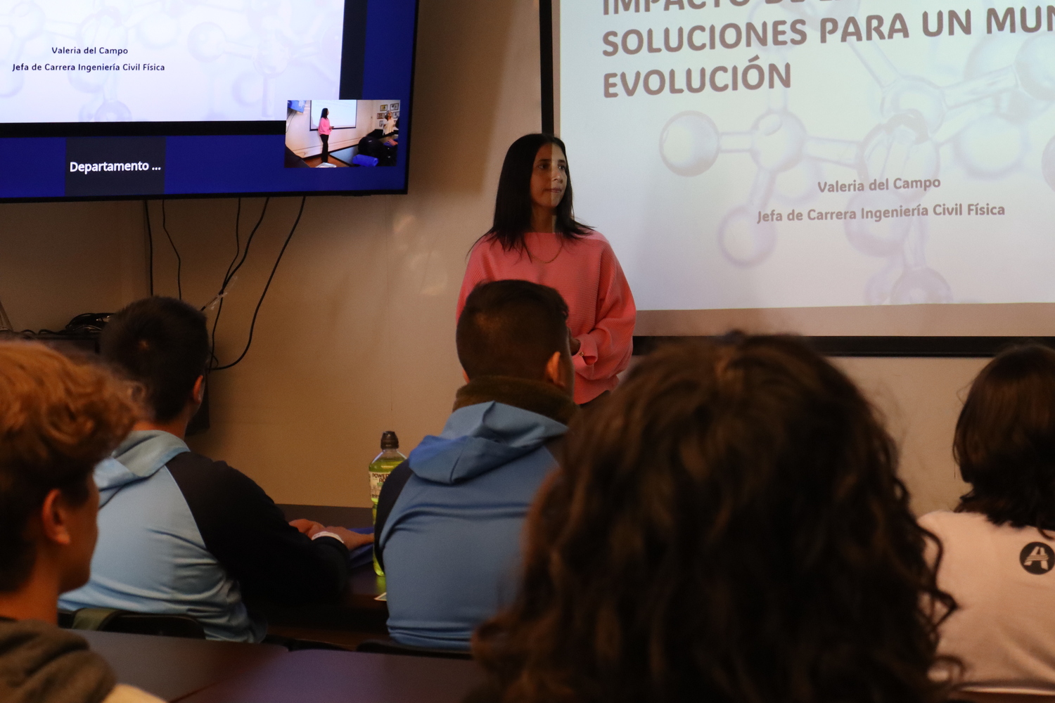 La Dra. Valeria del Campo subrayó la importancia de generar estas instancias de encuentro con futuros estudiantes, señalando que “cuando las y los estudiantes vienen a Puertas Abiertas van a conocer la universidad, lo que hacemos en el Departamento de Física y en nuestras carreras, pero también se acercan a las Ciencias de Frontera. En mi charla sobre nanotecnología buscamos que comprendan qué es, para qué sirve y qué se está desarrollando aquí y en el mundo en esta área tan relevante”.