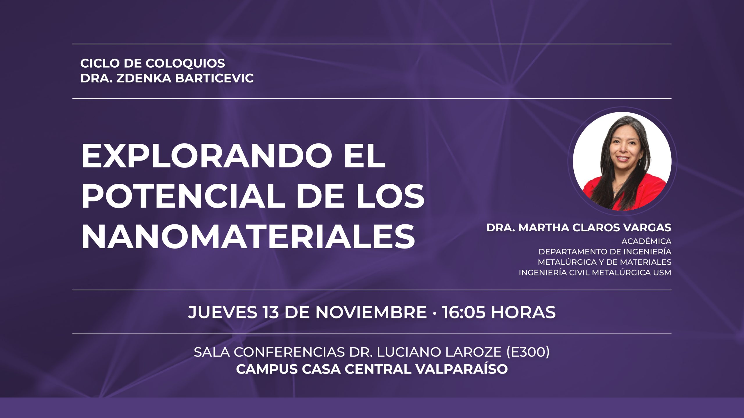 Ciclo de Coloquios ZBA: “Explorando el potencial de los nanomateriales” – Dra. Martha Claros Vargas ( Ingeniería Civil Metalúrgica, USM)