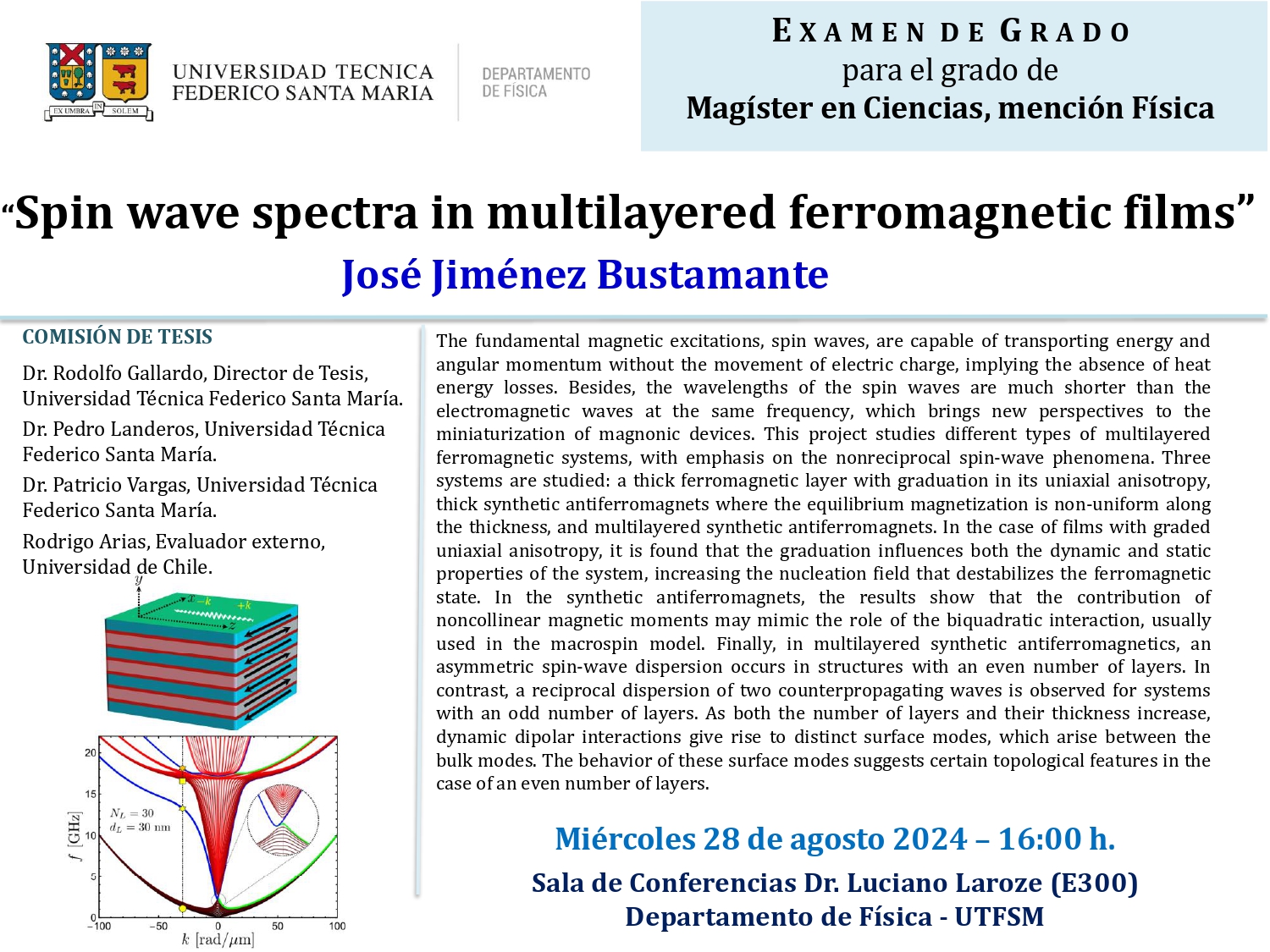 Examen de Grado para el grado de Magíster en Ciencias, mención Física