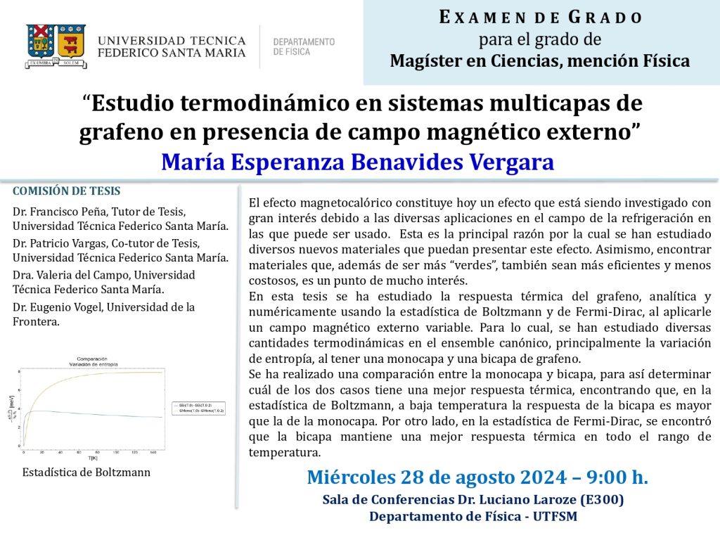 Examen de Grado para el grado de Magíster en Ciencias, mención Física