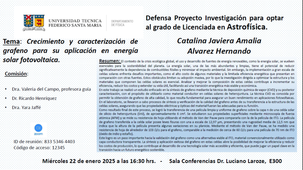 Tema: Crecimiento y caracterización de grafeno para su aplicación en energía solar fotovoltaica
