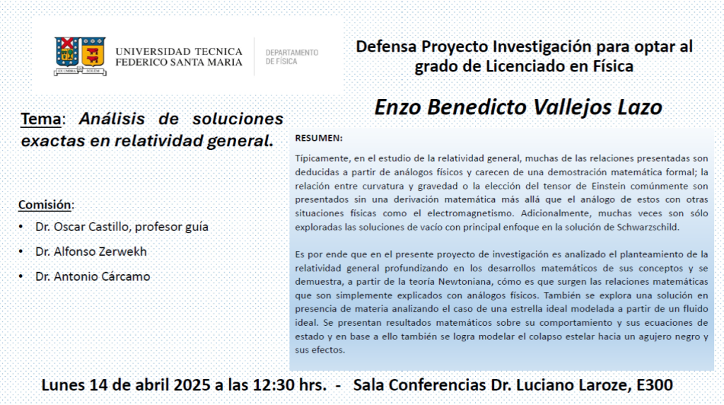 Defensa proyecto de investigación para optar a grado de licenciado en Física – Enzo Vallejos Lazo