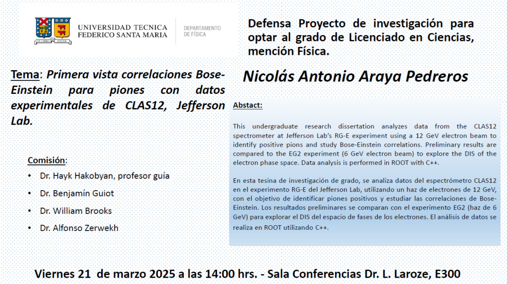 Defensa proyecto de investigación para optar al grado de Licenciado en Ciencias, mención Física – Nicolás Araya