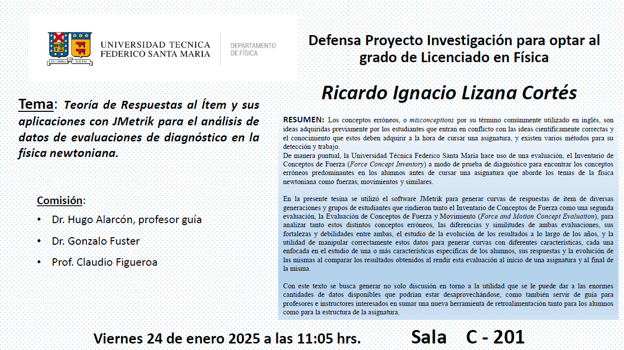 Defensa proyecto de investigación para optar al grado de Licenciado en Física – Ricardo Lizana