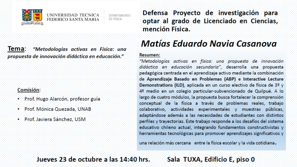 Título tesis: “Metodologías activas en Física: una propuesta de innovación didáctica en educación”