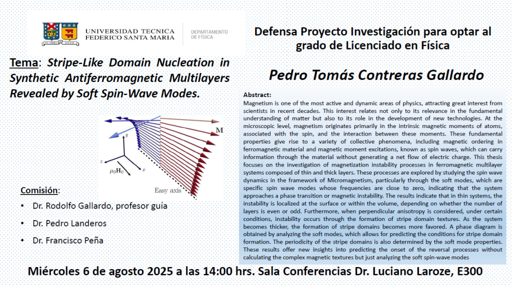 Título tesis: “Stripe-Like Domain Nucleation in Synthetic Antiferromagnetic Multilayers Revealed by Soft Spin-Wave Modes”