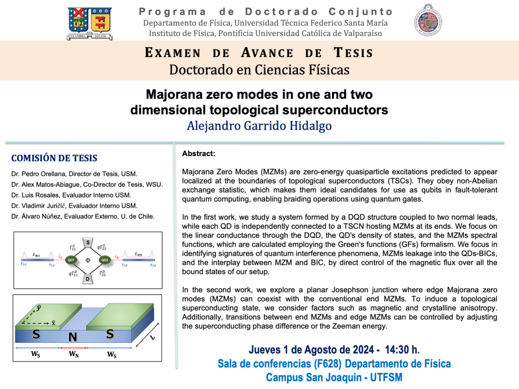 Tema: “Majorana zero modes in one and two dimensional topological superconductors”
