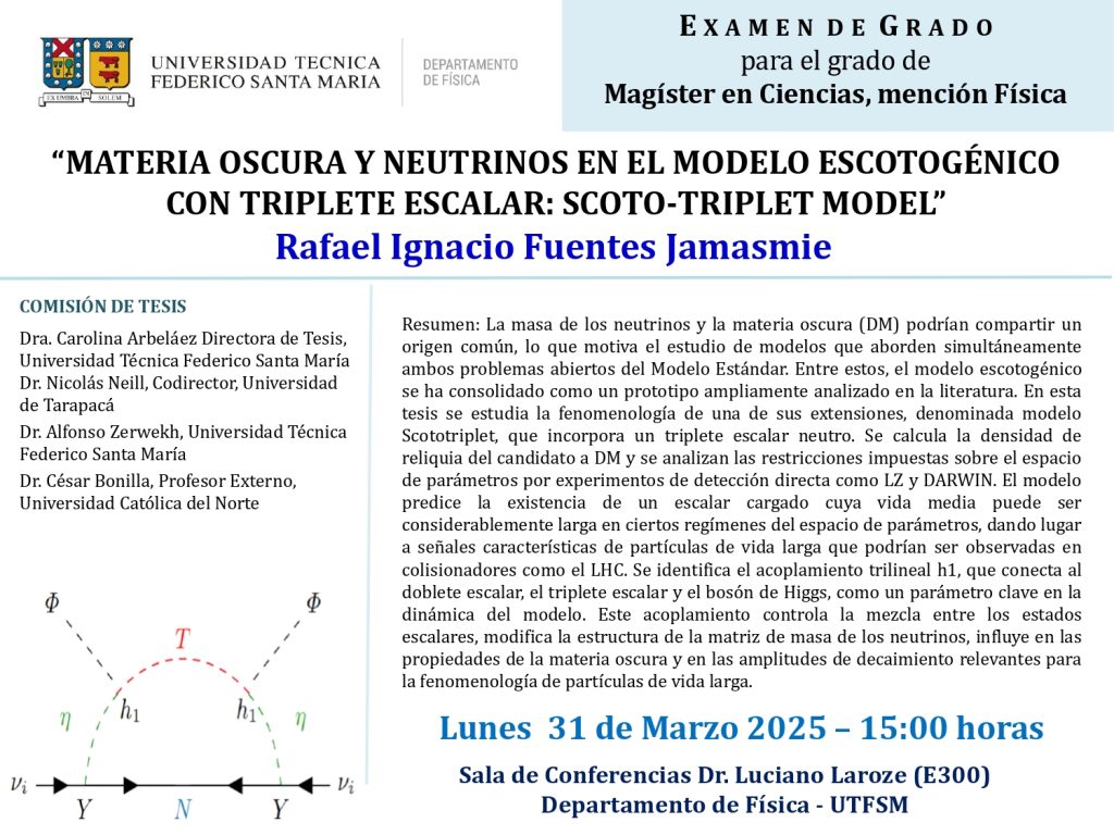 Título Tesis: “MATERIA OSCURA Y NEUTRINOS EN EL MODELO ESCOTOGÉNICO CON TRIPLETE ESCALAR: SCOTO-TRIPLET MODEL”