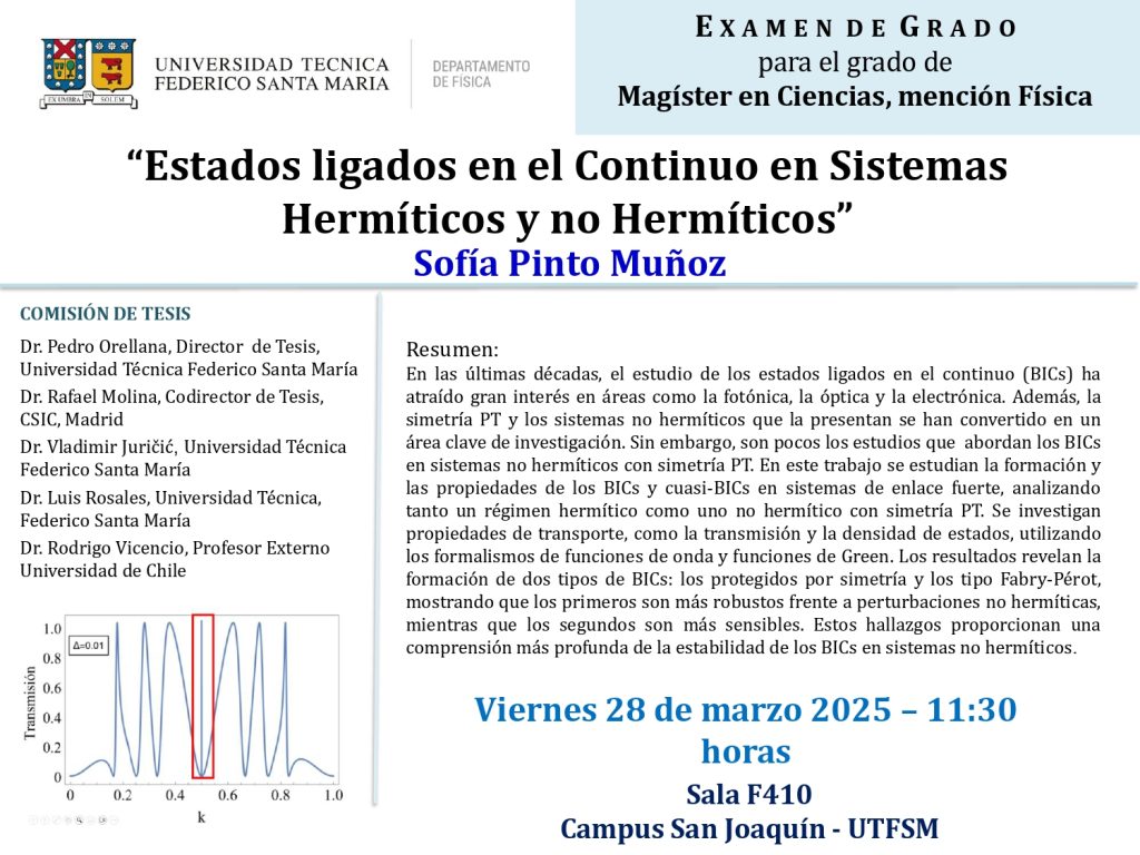 Examen de Grado para optar al grado de Magíster en Ciencias, mención Física – Sofía Pinto