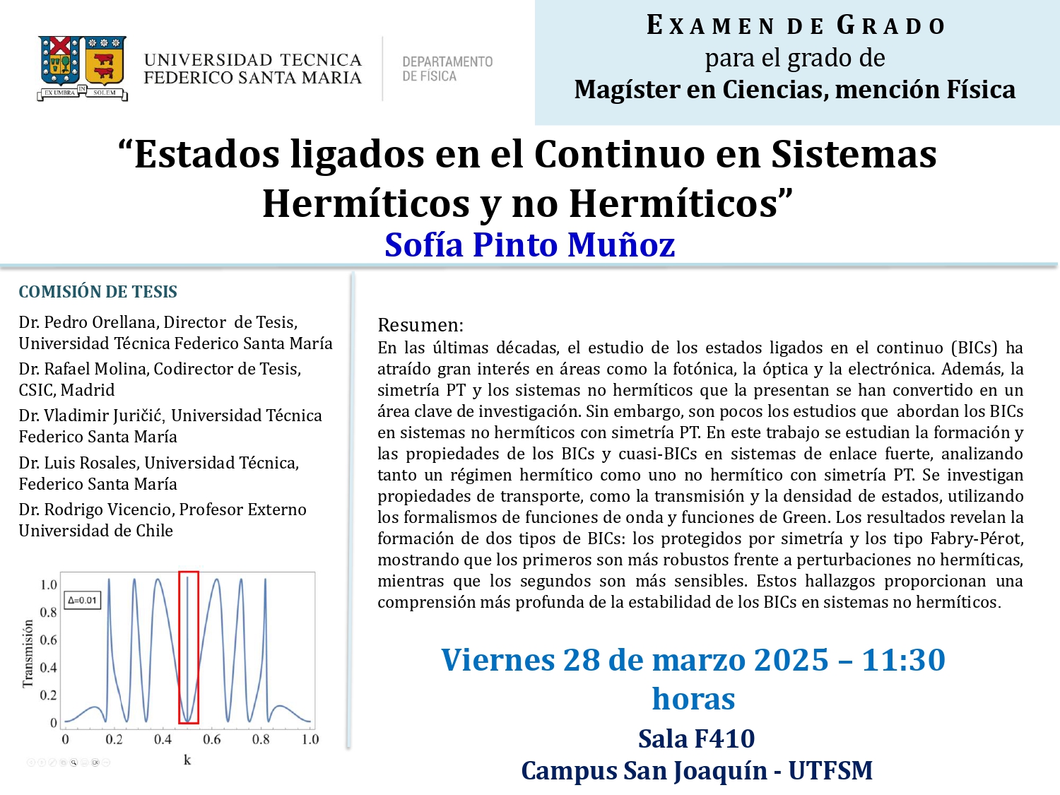 Examen de Grado para optar al grado de Magíster en Ciencias, mención Física – Sofía Pinto