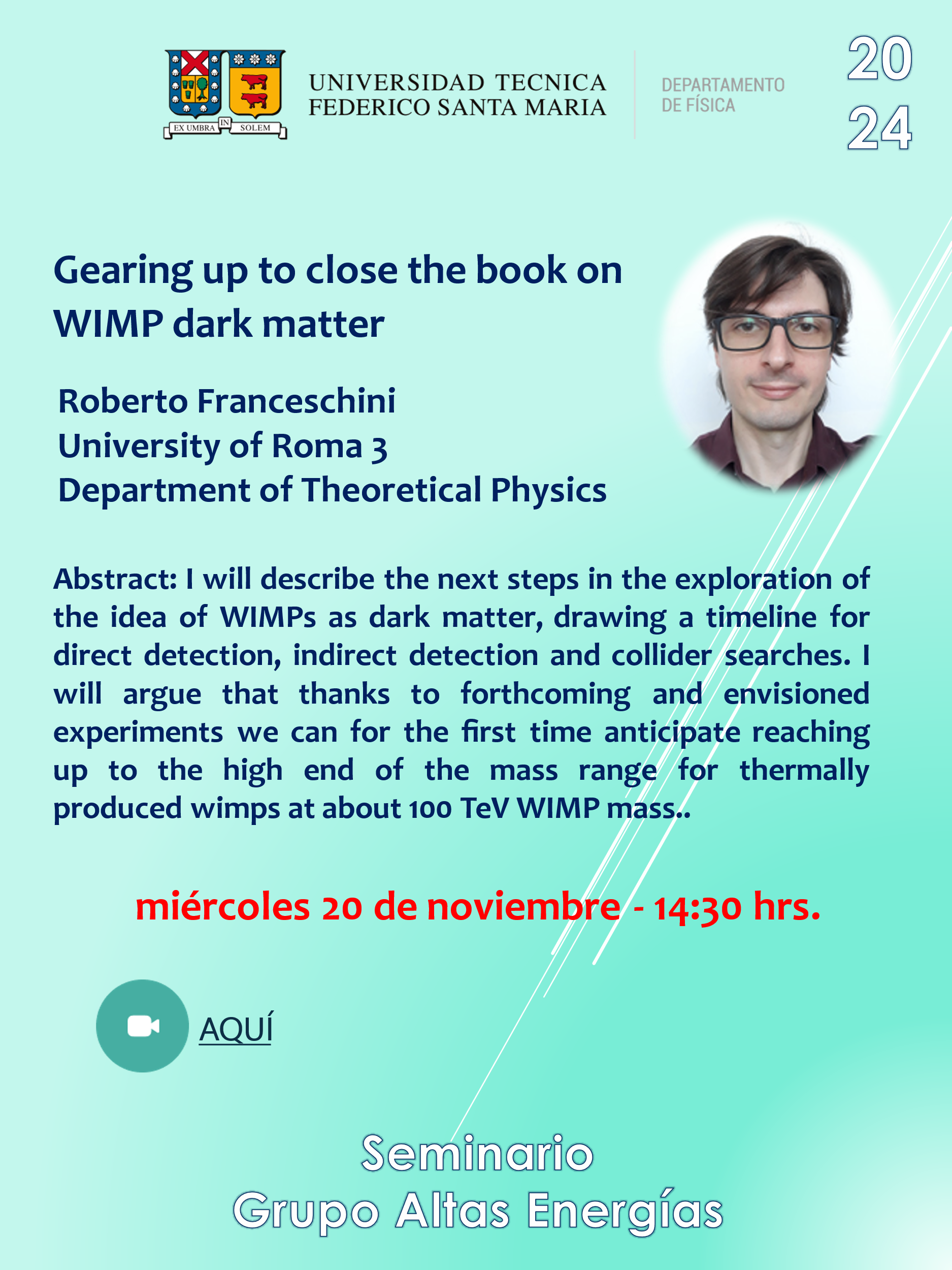 Note: The seminars are uploaded in the youtube channel UTFSMHEP Seminars: