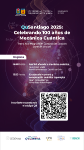 Con la participación de diversos científicos y expertos en física, la Universidad Técnica Federico Santa María y la Universidad de Santiago de Chile celebrarán el QuSantiago 2025, un encuentro dedicado a la investigación y desarrollo de tecnologías cuánticas, en reconocimiento de los 100 años transcurridos desde el desarrollo de la mecánica cuántica.