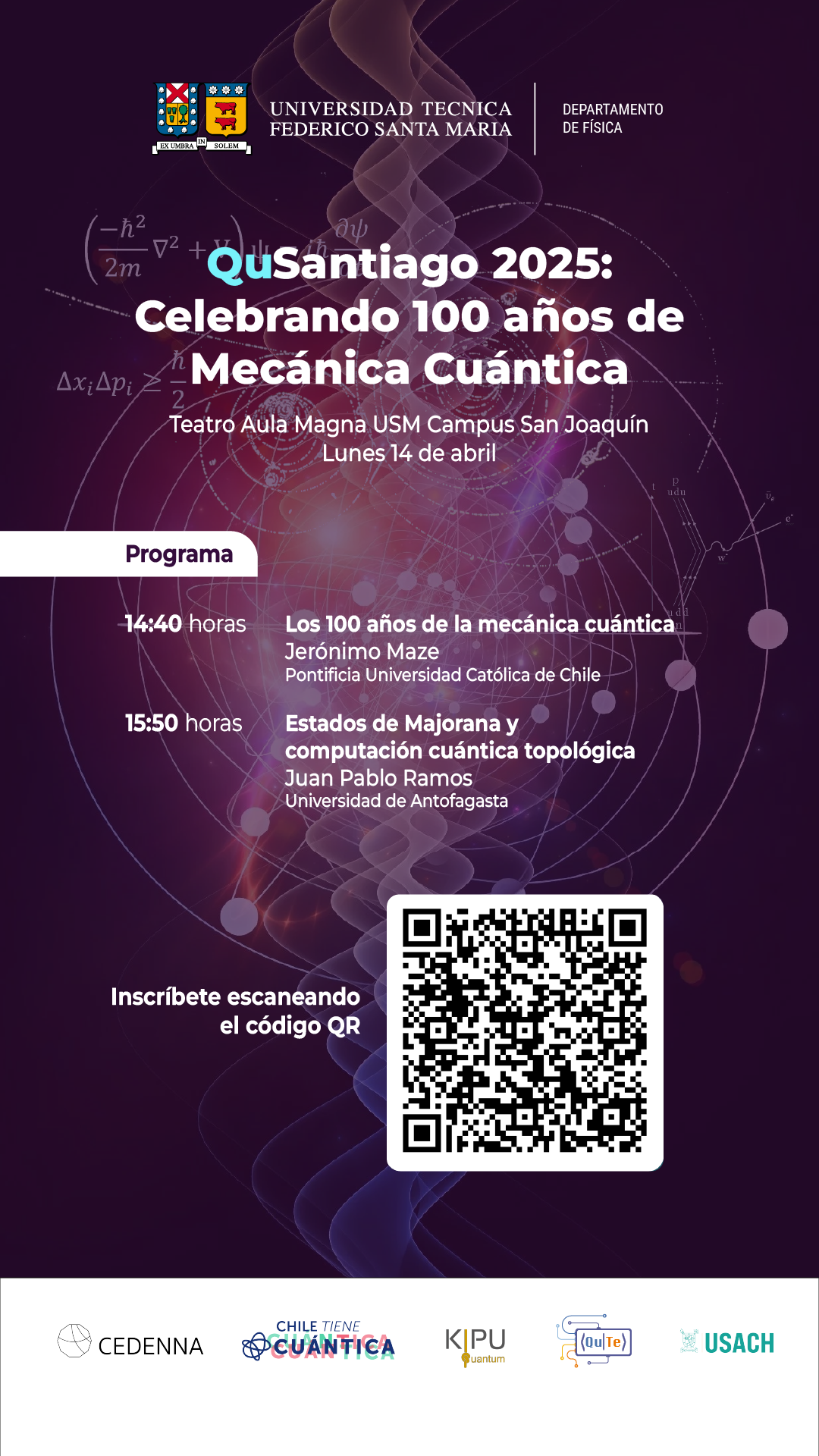 El académico Juan Pablo Ramos ofrecerá una charla titulada “Estados de Majorana y Computación Cuántica Topológica”. El profesor Ramos realizó su tesis de doctorado en la USM y fue la primera en Chile relacionada con los estados de Majorana y los puntos cuánticos, plataforma utilizada por Microsoft para anunciar el llamado procesador cuántico Majorana I.
